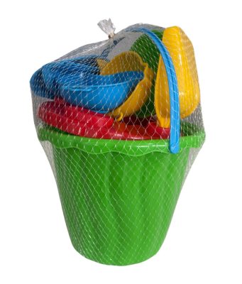 Homokozó vödör kiegészítőkkel és vitorlás lapáttal - zöld színben