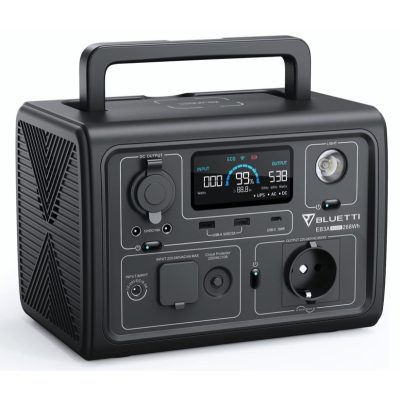 • Hordozható akkumulátor inverterrel egybeépítve 600W 268Wh napelem powerbank és inverter, Bluetti EB3A mobil erőmű