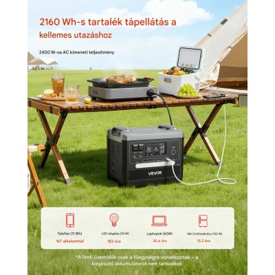 • Hordozható erőmű 2400W 2160 Wh akkumulátorral bővíthető napelemes generátor 10 kimenettel