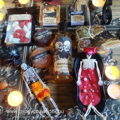 Horror ajándékcsomag, csonti-spa wellness box illatokkal, szappanokkal, masszázs olajjal. Ohh...drágám masszírozd meg a fáradt csontjaimat" Hátborzongató fürdő-élmény prémium kézműves termékekkel a kirobbanóan friss csontokért. Ez a horror SPA box egyszerre vicces, misztikus és kényeztető – tökéletes ajándék horror- és misztikumrajongóknak, vagy akár pároknak, akik imádják a különleges, csontig ható élményeket.