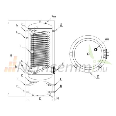 • Hőszivattyúval kompatibilis 250/60 bojler Indirekt tároló puffertartállyal kombinálva HMV-be épített hőcserélővel