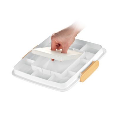 • Átlátszó fedő: Az átlátszó fedőnek köszönhetően könnyen látható, hogy milyen ételek vannak a tálcán, anélkül, hogy le kellene venni a fedőt.