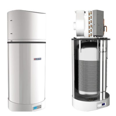 Beltéri kivitel. Falra szerelhető akár a pincébe, garázsba és hasznosítsa a környezeti levegő hőtartalmát és melegítse fel kevés energiával akár 55 fokosra a bojler vizét.