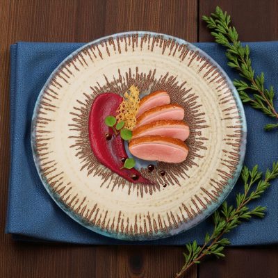 Az Infinity Micenas spanyol porcelán lapos tányér a fine dining tálalás és a mediterrán design tökéletes találkozása. A 25,5 cm-es átmérő ideális méret főételekhez, miközben a különleges szín- és mintavilág minden fogást műalkotássá emel.