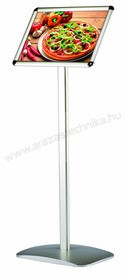 • Dekoratív infoállvány, egy mozdulattal álló/fekvő pozícióba állítható alu keret+ alu szár+porszórt talp;