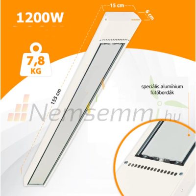 • Infrapanel 1200W falra és mennyezetre szerelhető 155x15x6 cm infravörös hősugárzó beltéri infra fűtőtest