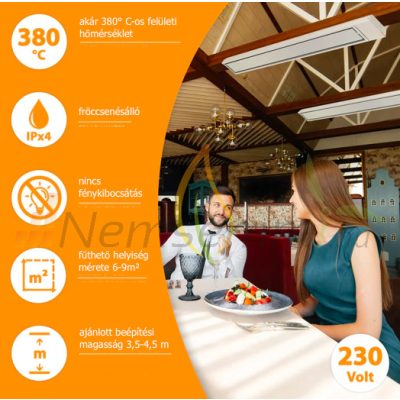 • Infrapanel 2400W falra és mennyezetre szerelhető 155x25x6 cm infravörös hősugárzó beltéri infra fűtőtest