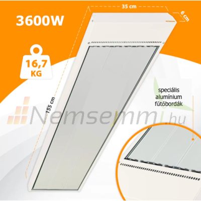 • Infrapanel 3600W falra és mennyezetre szerelhető 155x35x6 cm infravörös hősugárzó beltéri infra fűtőtest