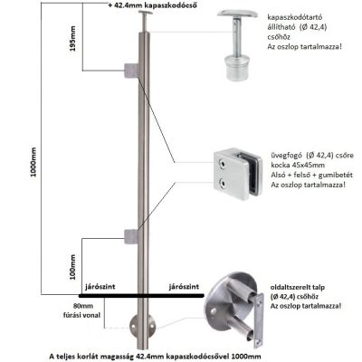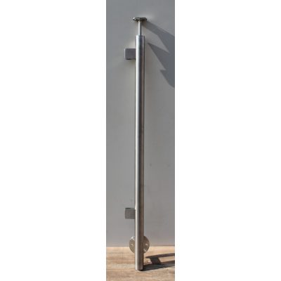 Inox üvegkorlát oszlop / oldalt szerelt, jobbos, kör profil