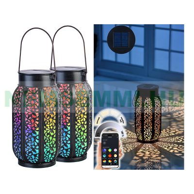 Intelligens fém napelemes lámpa 2 darabos szett dekoratív okos szolár lámpa alkalmazással, Bluetooth, IP44