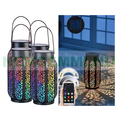 • Intelligens fém napelemes lámpa 4 darabos szett dekoratív okos szolár lámpa alkalmazással, Bluetooth, IP44