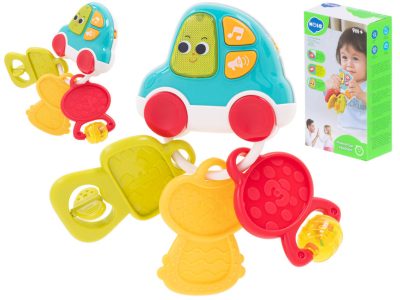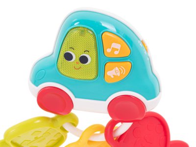 A színes játékot fény- és hanghatásokkal gazdagítottuk, hogy a játék még vonzóbbá váljon. Nyomja meg a gombot, hogy vidám dallamokat indíthasson el.