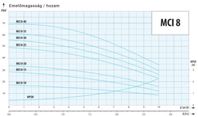 Az MCI szivattyú egy kiváló minőségű többlépcsős nem önfelszívó centrifugál szivattyú. Az MCI szivattyúk nagy teljesítményű és robosztus egységek, melyek széles körű felhasználásra készültek a kis otthoni telepítésektől egészen az ipari folyamatos működésű rendszerekig. A hidraulikus alkatrészek teljes egészében rozsdamentes acélból készültek, és a megerősített mechanikus tömítés lehetővé teszi a 70 °C -ig terjedő hőmérsékletű folyadékok használatát. A szivattyúk akár óránként 30 m3 folyadék szállítására is képesek. Ennek eredményeként széles körben alkalmazhatóak a háztartásokban, az iparban és a mezőgazdaságban.