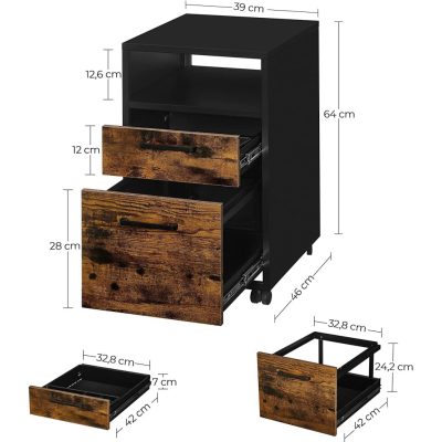 Irattartó, Irodaszekrény 2 fiókkal, 39 x 64 x46 cm, rusztikus barna és fekete |