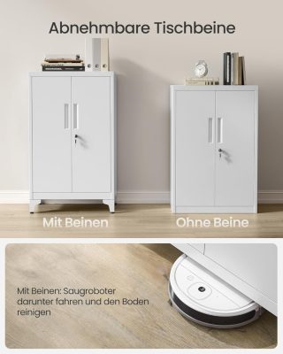 A 40 × 60 × 90 cm-es iratszekrény bőséges tárolóhelyet kínál dokumentumok, iratok és egyéb tárgyak számára. A két ajtó mögött található polcok állítható magasságúak, így különböző méretű tárgyak számára is ideális tárolómegoldást biztosítanak.