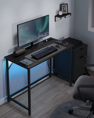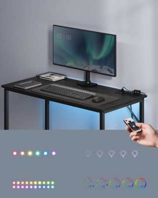 Irodai asztal, LED lámpákkal, elosztó, számítógépes asztal, 50 x 100 x 76, helytakarékos, dolgozószobához, otthoni irodához, fekete: