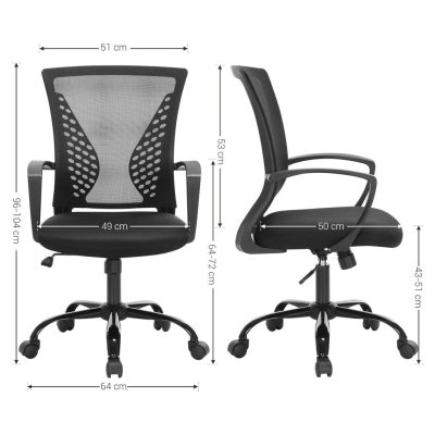 Irodai szék hálós borítással, állítható magasságú számítógépes szék, 360°-ban forgatható szék, billenő funkció, légáteresztő, irodai, dolgozószoba, maximális teherbírás 120 kg, fekete