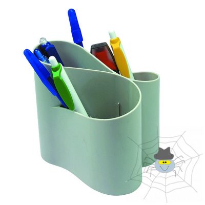 Transzparens fekete, műanyag, hullám kialakítású, 3 rekeszes írószertartó.