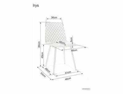Az Irys Velvet étkezőszék a modern design és a kényelem tökéletes ötvözete. A szék háttámláját gyémántmintás steppelés díszíti, amely különleges megjelenést kölcsönöz neki. A puha, tengerészkék bársony kárpitozás és a matt fekete fémváz harmonikus kontrasztot alkot. A szék 84 cm magas, 46 cm széles, és 42 cm mély ülőfelülettel rendelkezik, amely ideális méretezést biztosít az étkezőasztal mellé.