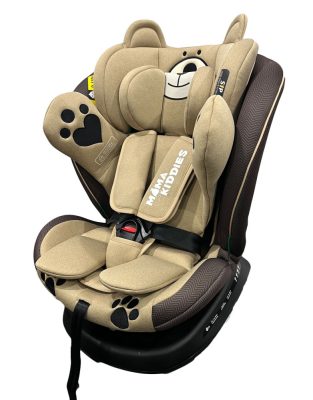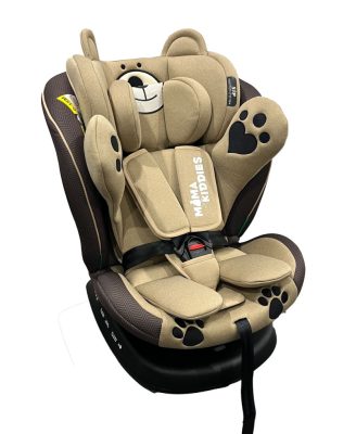 ISOFIX-es 360°-ban forgatható Mama Kiddies Murphy Bear biztonsági autósülés (40-150 cm iSize) bézs-barna színben ajándék napvédővel