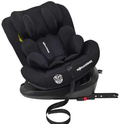 • ISOFIX-es 360°-ban forgatható Mama Kiddies Racing biztonsági autósülés (40 -125 cm) fekete színben + Ajándék fejvédő párna