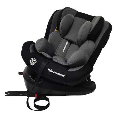 ISOFIX-es 360°-ban forgatható Mama Kiddies Racing biztonsági autósülés (40 -125 cm) fekete-szürke színben + Ajándék fejvédő párna