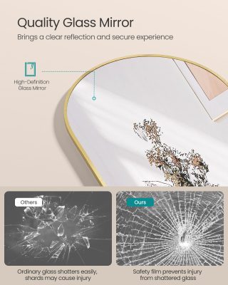 • ERŐS ÉS BIZTONSÁGOS:A magas szilárdságú edzett üvegből készült tükör biztonsági fóliával van ellátva, ami minimalizálja a törés kockázatát, így a ritka törés esetén is biztosítja a biztonságodat.