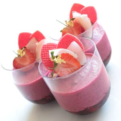 • Mini desszertek: pohárkrémek, bonbonok, mousse-ok és panna cotta.
