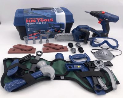 Működőképes szerszámok vannak benne – a fúrónak forgófúrója van, ami valódi hatást kelt anélkül, hogy elemekre lenne szükség. A kulcs állítható, a kézifűrész mozgatható, és a csavarok becsavarása kihívást jelenthet a kis barkácsolók számára.