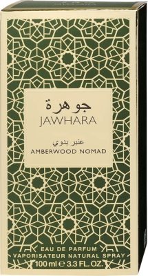 Jawhara Amberwood Nomad Eau de Parfum 100 ml meleg, gyantás és fás illatjegyeket ötvöz, ahol a kardamom, mirha, cédrusfa és labdanum keveréke gondoskodik a karakteres, unisex illatélményről. A nyolcszögletű üveg és az arany kupak elegáns megjelenést biztosít, a kompozíció pedig a Közel-Kelet gazdag hagyományait idézi.