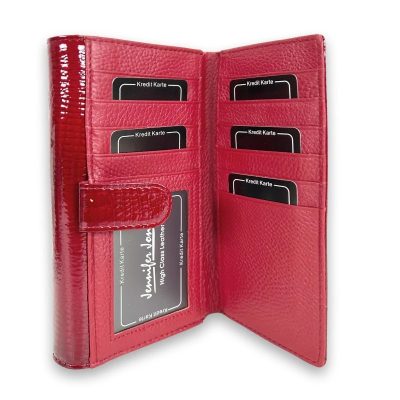 Jennifer Jones Női Bőr Pénztárca 5199-2 Piros Lakk - Nagy Méret - Extra Kártyatartóval