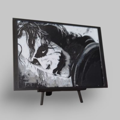 Ez itt nem egy egyszerű dekoráció. Ez a Heath Ledger-féle Joker pillantása, amitől még a fal is elgondolkodik az élet értelmén. Hueforge technikával készült 3D nyomat, ahol a színek nem festve, hanem rétegenként vannak nyomtatva – szóval nem csak jól néz ki, de okos is. Mint a Joker, csak kevésbé robbanékony.