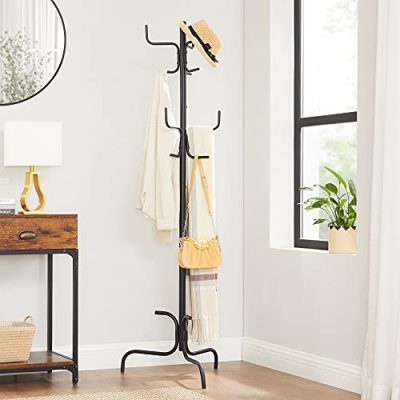 Kabáttartó, álló fém kabátfa 6 kampóval, kabátokhoz, sapkákhoz, táskákhoz, 54 x 54 x 171,1 cm, fekete: