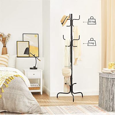 • A jobb stabilitás érdekében: a 6 elegánsan ívelt horog mindegyike akár 5 kg-ot is elbír, az állvány is nagy stabilitást biztosít. Ne becsüld alá ezt az acél ruhatartót, rengeteg erő van benne