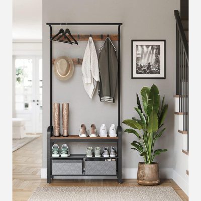 • [Szilárd és stabil] A masszív acélváz, a 3,8 cm széles lábak és a minőségi forgácslap ezt a robusztus kabáttartót alkotják, melynek cipőtároló padja akár 90 kg-ot is elbír, így nyugodtan ülhet;a borulásgátló készlet növeli az általános stabilitást