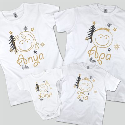 Karácsonyi anya, apa, fia és lánya családi póló szett