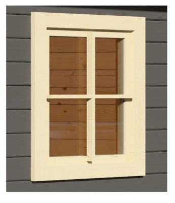 Az ablak 69 x 80 cm (szélesség x magasság) méretével optimális megoldás kisebb és nagyobb kerti házakhoz egyaránt. A valódi üvegezés gondoskodik a maximális fényáteresztésről, míg a masszív lucfenyő keret természetes megjelenést és hosszú élettartamot biztosít.