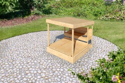 Karibu fedett homokozó vályogkonyhával – kreatív szabadtéri játék és természetes minőség