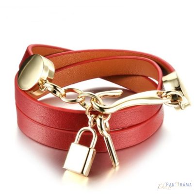 • Karkötő női - Bőr- acél lakattal- bordó