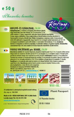 Kifejtő- és szárazbab. 2-3 méterre is megnövő, támrendszert igénylő, nagy szemű tarka Lima-bab. Hüvelye 10-12 cm hosszú és 2,5 cm széles melyben 3-4 lapos, nagyméretű, szép piros-barnás rajzolatú mag fejlődik. Zsenge magja a zöldbabhoz, száraz magja pedig az étkezési babhoz hasonlóan készíthető el. Szárazságtűrő, betegség-ellenálló fajta.