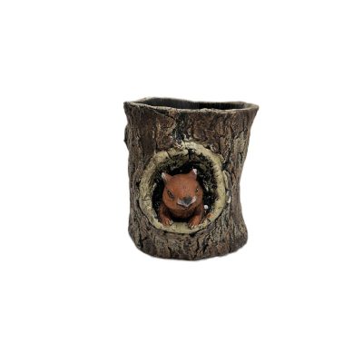 Kaspó kő 20.7*18.4*18.5 cm fatörzs mókussal barna