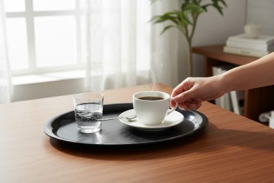 • Kávéházi tálca 26,5x19 cm, fekete, műanyag