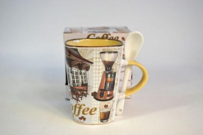 Kávés bögre színes, mintás kanállal díszdobozban Chile