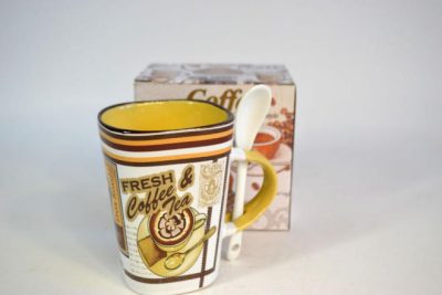 Kávés bögre színes, mintás kanállal díszdobozban Rio