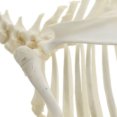 Ezt a kecske csontváz példányt az állat részletes anatómiai szerkezetének tanulmányozására, bemutatására és megjelenítésére használják. A csontok szorosan kapcsolódnak és számozva vannak, hogy megkönnyítsék az osztályozást a mellékelt dokumentáció használatakor.