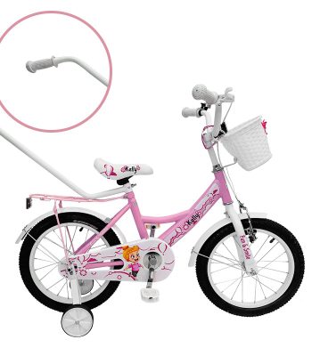 Kelly kerékpár szülői tolókarral rózsaszín színben 16" + ajándék