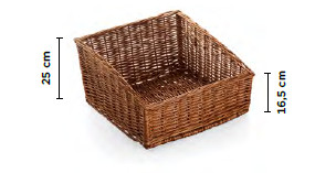 A négyzet alakú kenyérkosár nagyméretű, 46x45 cm-es alapterülettel, amely bőséges helyet biztosít kenyérnek, pékárunak vagy gyümölcsnek. A sötétbarna fűzfából kézzel font kosár természetes, rusztikus, mégis elegáns megjelenést kölcsönöz. Különleges textúrája miatt éttermekben, hotelekben és svédasztalos tálalásoknál is kitűnő választás.