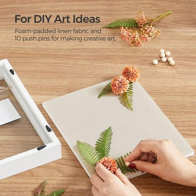 Shadow Box keret, képkeret zsineggel, ruhacsipeszekkel és bottűkkel barkácsoláshoz, vászonból készült hátlap, üveg előlap és MDF szegély, fehér: