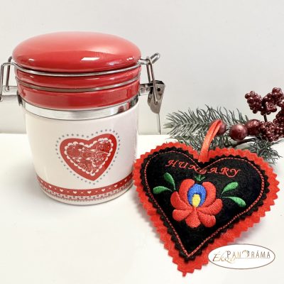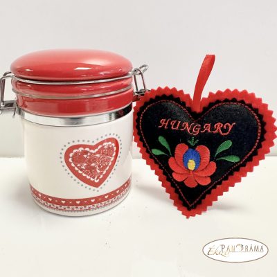 Ajándéknak is kiváló kerámia csatos üveg magyaros szív párnácskával!