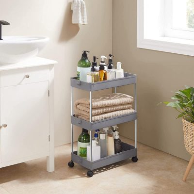 • Vess véget a rendetlenségnek! Káosz uralkodik a szobádon? Csak 40 x 60 x 22 cm helyre van szüksége ehhez a 3 polcos tárolókocsihoz, amely segít minden fürdőszobai termék, konyhai eszköz vagy irodai dokumentum rendezésében.